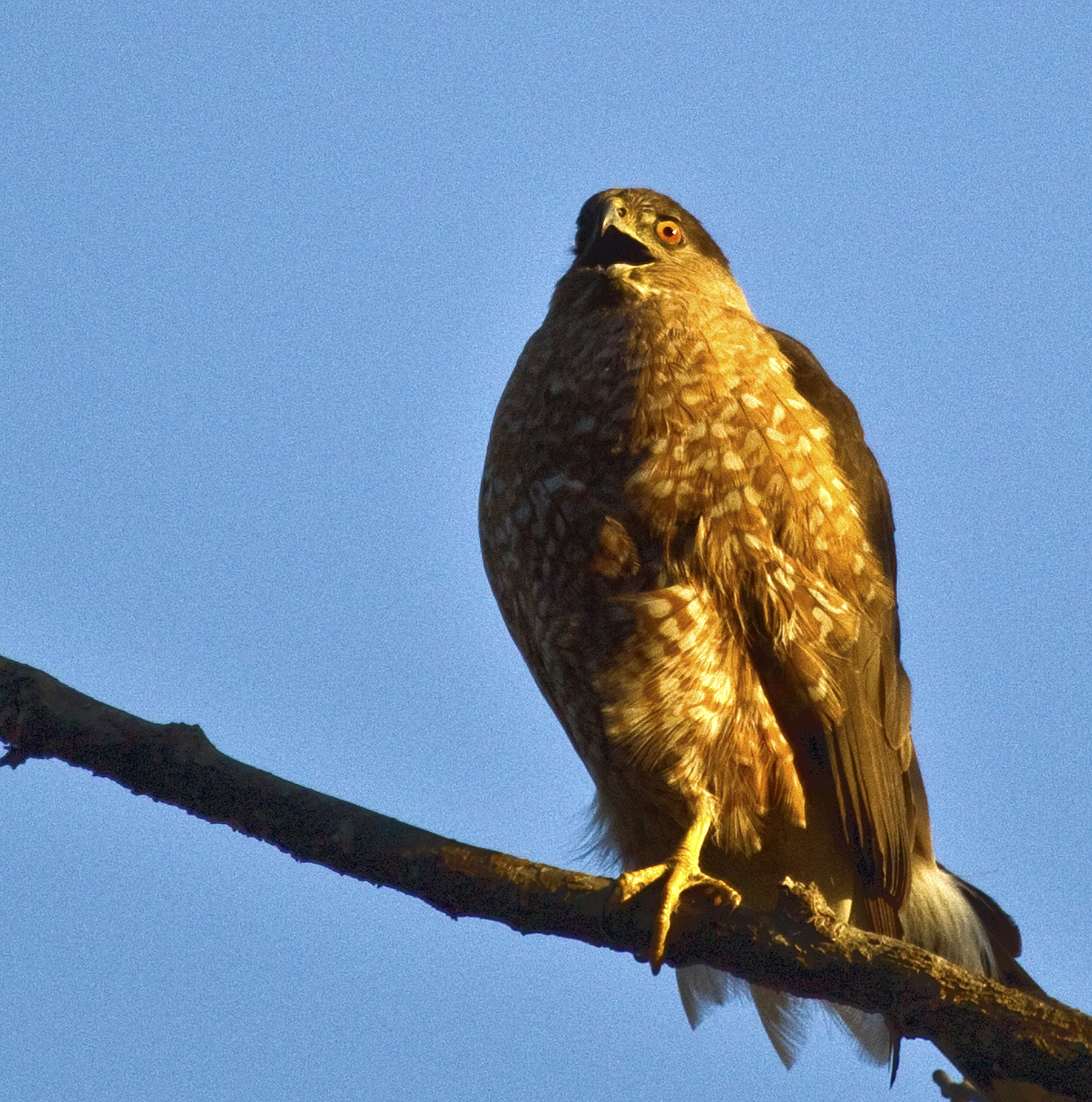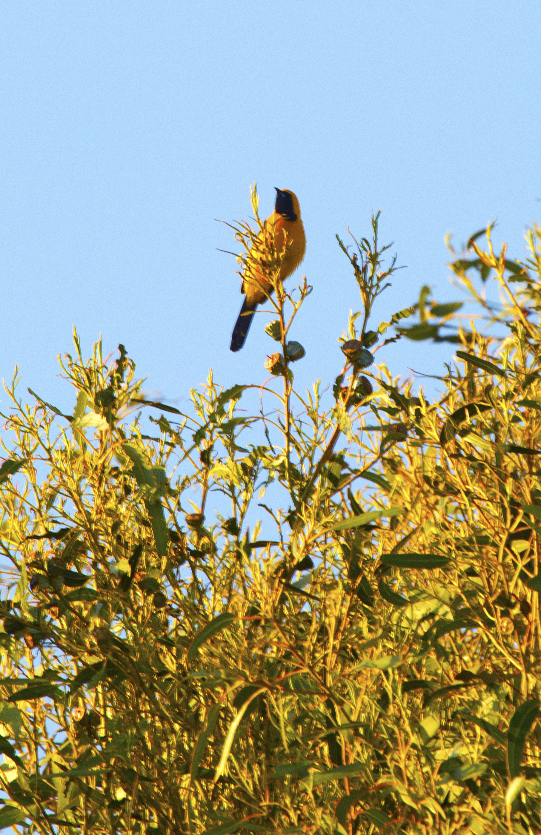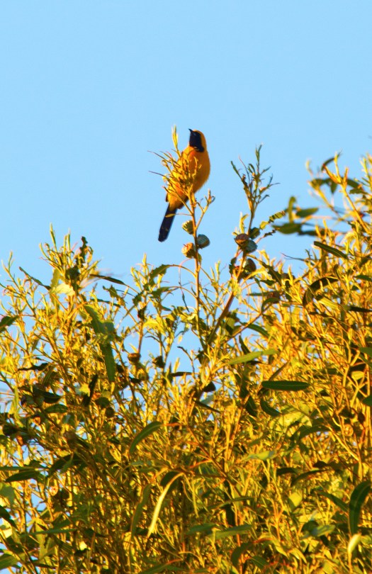 These guys like to taunt me. Â The call out and say ‘hey lady, give it your best shot!”. Â Today, just before sunset this guy was sitting on top of a tree calling for a mate. Â (I assume that’s what it was because he/she was really squawking.) Â The light just before sunset gives a nice golden hue. Â I may not have the super duper zoom lens, but this shot makes me happy.